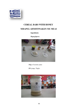 CEREAL BARS WITH HONEY ΜΠΑΡΕΣ ΔΗΜΗΤΡΙΑΚΩΝ ΜΕ ΜΕΛΙ Ingredients: Περιεχόμενα: 100gr of sesame paste 100 γραμμ. Ταχίνι 46