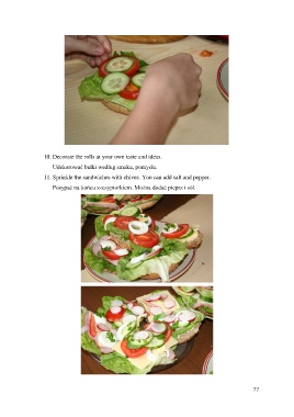 10. Decorate the rolls at your own taste and ideas. Udekorować bułki według smaku, pomysłu. 11. Sprinkle the sandwiches with chives. You can add salt and pepper. Posypać na końcu szczypiorkiem. Można dodać pieprz i sół. 77