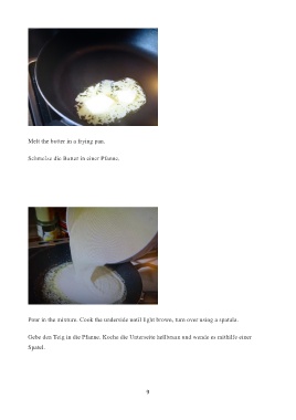 Gebe den Teig in die Pfanne. Koche die Unterseite hellbraun und wende es mithilfe einer