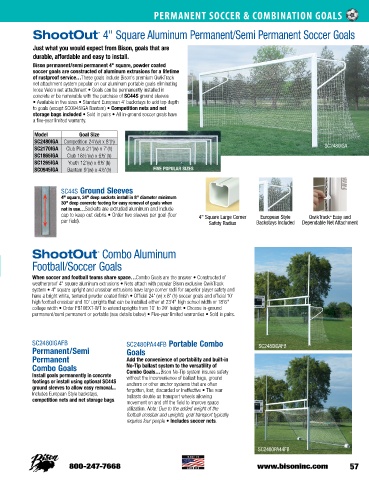 Install goals permanently in concrete Combo Goals…Bison No-Tip system insures safety