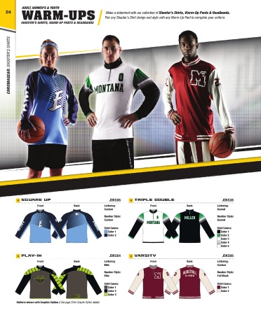 2 WARM-UPS Make a statement with our collection of Shooter’s Shirts, Warm-Up Pants & Headbands. HOW TO ORDER: 1 Choose your Design 2 Choose your Style * For next steps and additional information, 25