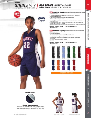 589RSPW Women’s XS-XXL List: $30.00, $34.00 (XXL) STOCK: REVERSIBLE GAME JERSEYS & SHORTS