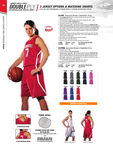 STOCK: REVERSIBLE GAME JERSEYS & SHORTS • Contrast fabrics on each side - colored side and contrast inserts are eXtreme pin dot • Open bottom, each side individually hemmed for decoration STOCK: REVERSIBLE GAME JERSEYS & SHORTS