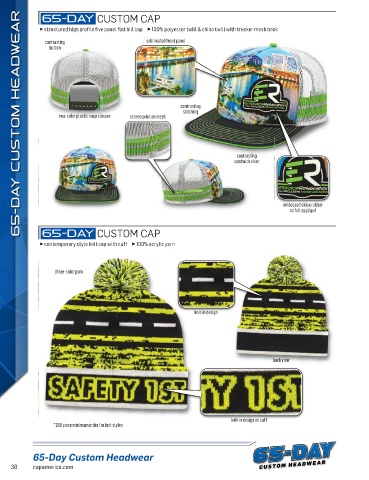 1 structured high profile five panel flat bill cap 1 100% polyester twill & chino twill with trucker mesh back