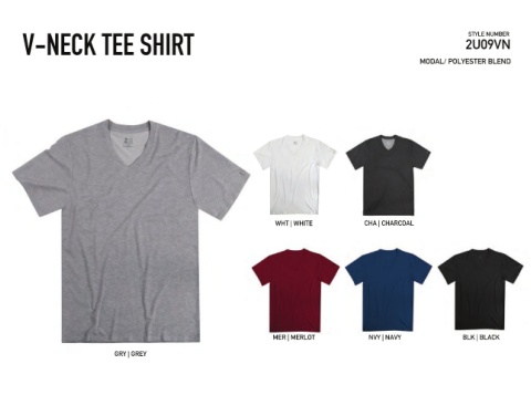 V-NECK TEE SHIRT 2U09VN STYLE NUMBER MODAL/ POLYESTER BLEND WHT | WHITE CHA | CHARCOAL M NVY | NAVYVY | NAVY BLK | BLACK BLK | BLACK MER | MERLOTER | MERLOT N GRY | GREY