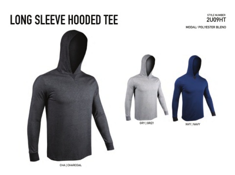 LONG SLEEVE HOODED TEE 2U09HT STYLE NUMBER MODAL/ POLYESTER BLEND GRY | GREY NVY | NAVY CHA | CHARCOAL