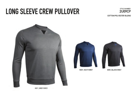 LONG SLEEVE CREW PULLOVER 2U09CP STYLE NUMBER COTTON/POLYESTER BLEND N NGR | NAVY/GREYGR | NAVY/GREY BGR | BLACK/GREYBGR | BLACK/GREY GGY | GREY/GREY