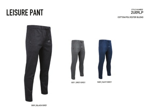 LEISURE PANT 2U09LP STYLE NUMBER COTTON/POLYESTER BLEND GGY | GREY/GREY NGR | NAVY/GREY BGR | BLACK/GREY