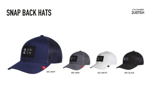 SNAP BACK HATS 2U07SH STYLE NUMBER 023 | NAVY 038 | GREY 022 | WHITE 033 | BLACK