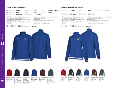 144 Power Red/ 12VZØ49 DY88Ø1 Team Royal/ Maroon/ DX7343 Power Red/ Black/ Team Navy/ Team Royal/ Maroon/ Grey/