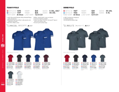 STYLE #: 12VF MSRP: $45 SIZES: XS-2XL STYLE #: 1826 MSRP: $25 SIZES: S-XL