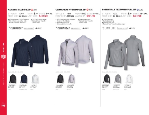 STYLE #: 1245 MSRP:$75 SIZES: S-4XL STYLE #: 1244 MSRP:$100 SIZES: S-4XL STYLE #: 123Z MSRP:$70 SIZES: XS-2XL