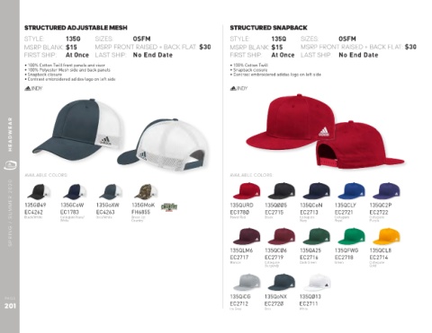 STYLE: 135G SIZES: OSFM STYLE: 135Q SIZES: OSFM