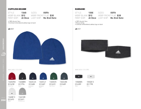 STYLE: 136G SIZES: OSFA STYLE: 135E SIZES: OSFA