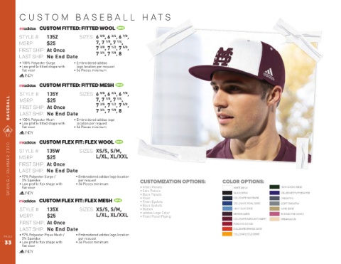 SPRING / S UMMER 20 20 MSRP: $25 • Embroidered adidas logo location CUSTOMIZATION OPTIONS: COLOR OPTIONS: