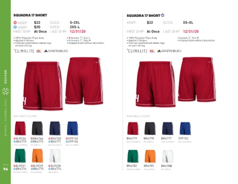 • 100% Polyester Pique body • Inseam: 7”, Size L • 100% Polyester Pique body • Inseam: 5”, Size M