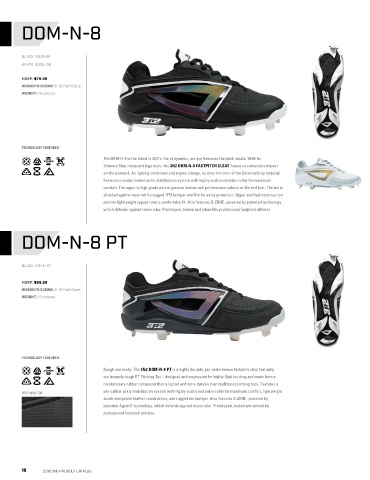 pro-caliber ankle stabilization system with highly cushioned ankle collar for maximum comfort, lightweight compound that is lighter and more durable than traditional pitching toes. The DOM-N-8 TPU PT features a pro-