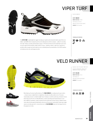 outsole, optimally grooved for unmarred traction, the VELO RUNNER allows for fluid range of motion