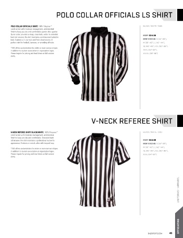 BLACK / WHITE 7220-01 WATER RESISTANT OFFICIALS SHIRT. Traditional 100% V-NECK REFEREE SHIRT BLACK/WHITE. 100% Polyzone™ BLACK / WHITE 7000