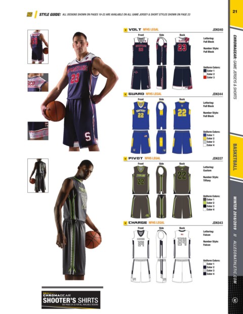 Game SINGLE PLY GAME Basketball Styles. Use our 3-Tier Uniform Offering for STYLE GUIDE: ALL DESIGNS SHOWN ON PAGES 19-22 ARE AVAILABLE ON ALL GAME JERSEY & SHORT STYLES SHOWN ON PAGE 23