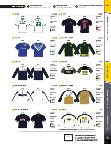 2 WARM-UPS Make a statement with our collection of Shooter’s Shirts, Warm-Up Pants & Headbands. HOW TO ORDER: 1 Choose your Design 2 Choose your Style * For next steps and additional information, 25