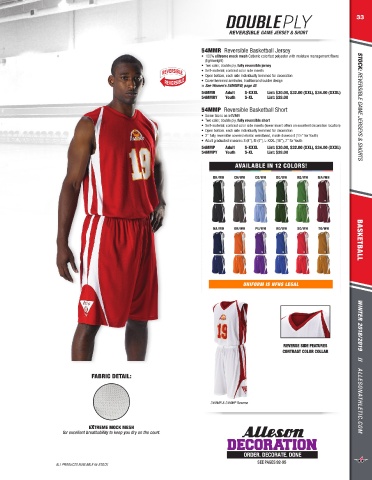 STOCK: REVERSIBLE GAME JERSEYS & SHORTS • Contrast fabrics on each side – front body, collar, overlay are eXtreme plaited knit on both • Cover hemmed armholes, traditional shoulder design STOCK: REVERSIBLE GAME JERSEYS & SHORTS