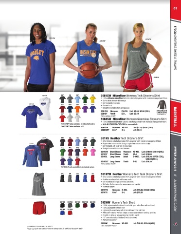 534SS Long Sleeve Adult S-XXXL List: $32.00, $36.00 (XXL), $40.00 (XXXL) 506XSW Microfiber Women’s Sleeveless Shooter’s Shirt BASKETBALL