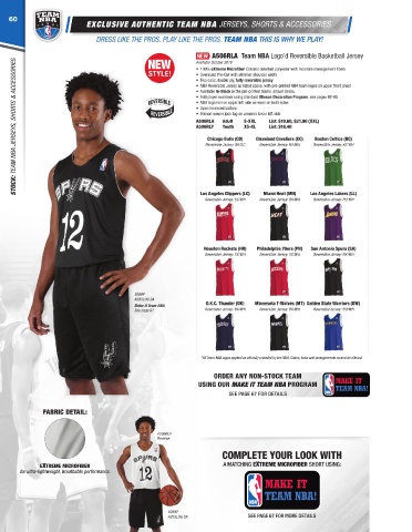 STYLE! • 100% eXtreme Microfiber Cationic colorfast polyester with moisture management fibers • NBA Game & Practice T-Shirt as listed above, with pre-printed NBA team logos on upper front chest