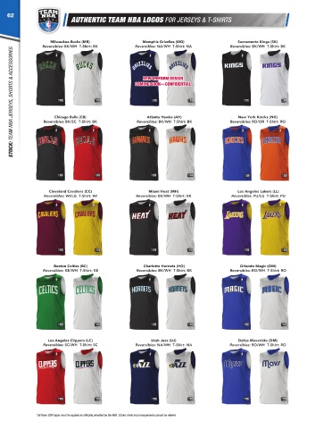 62 A405 NBA T-Shirts are stocked with logos on the dark or primary color (Away). See page 61 for In-Stock teams. All teams are available in white (Home) and 63