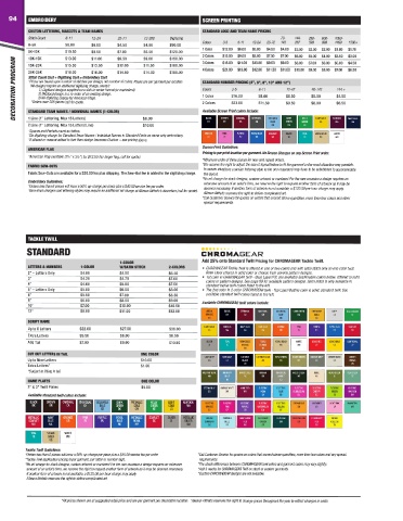 *All prices shown are at suggested retail price and are per garment per decoration location. *Alleson Athletic reserves the right to change prices throughout the year to reflect changes in costs. See page 88 for all stock decoration placement options.