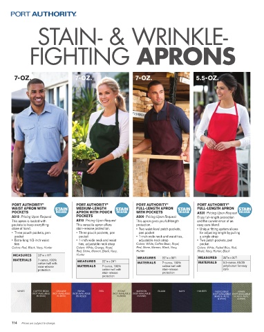 stain-release MATERIALS 7-ounce, 100% cotton twill with poly/cotton for easy