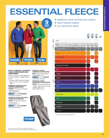 • 9-ounce, 50/50 cotton/poly fleece ESSENTIAL FLEECE