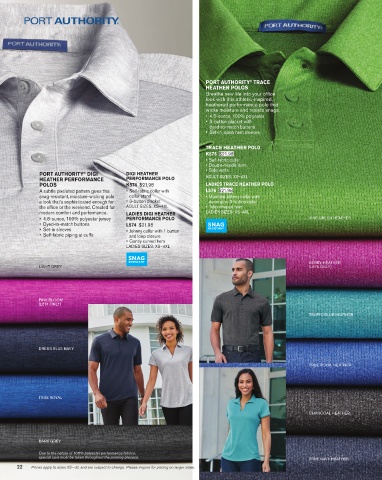 • 4.8-ounce, 100% polyester jersey PERFORMANCE POLO VINE GREEN HEATHER