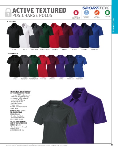 Due to the nature of 100% polyester performance fabrics, special care must be taken throughout the printing process. 33
