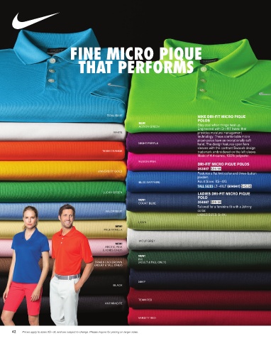 42 Prices apply to sizes XS—XL and are subject to change. Please inquire for pricing on larger sizes.
