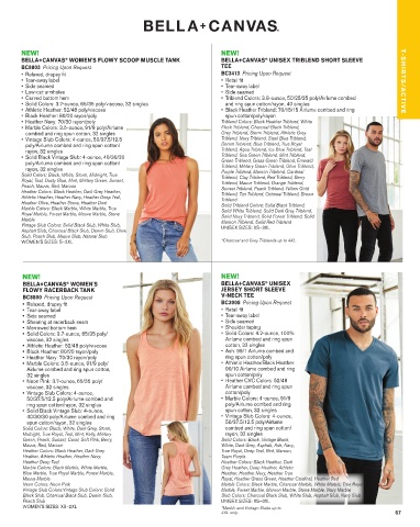 • Curved bottom hem • Triblend Colors: 3.8-ounce, 50/25/25 poly/Airlume combed