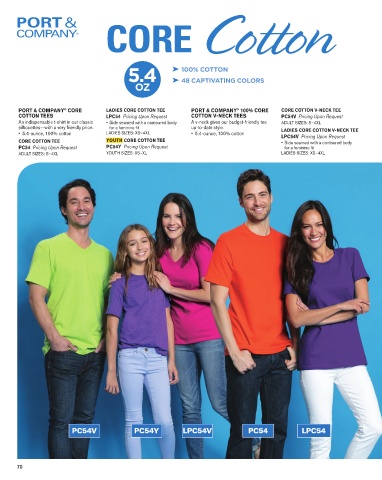 • 5.4-ounce, 100% cotton LADIES SIZES: XS–4XL • 5.4-ounce, 100% cotton LADIES CORE COTTON V-NECK TEE