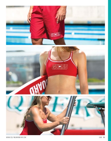 • 90% Polyester / 10% Spandex MEN’S Crew neck long sleeve rash guard • 90% Polyester / 10% Spandex WWW.DOLFINSWIMWEAR.COM LIVE 105
