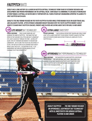 AND COLLEGIATE PLAYERS. AFTER EXTENSIVE CONSUMER INSIGHT RESEARCH INTO THE YOUTH FASTPITCH MARKET, DUDLEY