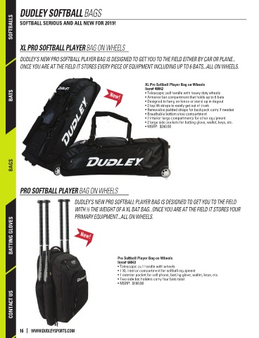 DUDLEY’S NEW PRO SOFTBALL PLAYER BAG IS DESIGNED TO GET YOU TO THE FIELD EITHER BY CAR OR PLANE...