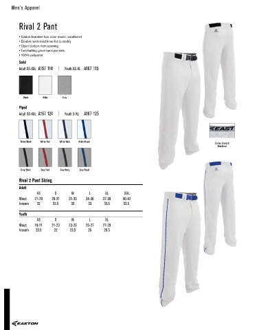 • Easton branded two color elastic waistband • Double reinforced knee for durability