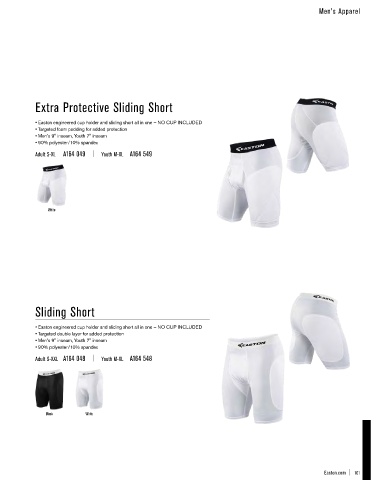• Batting glove back pocket • Easton engineered cup holder and sliding short all in one – NO CUP INCLUDED