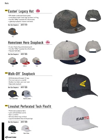 • Semi curved bill and Jonathan DeClaro for the production, photography and printing of this catalog. (Non-Easton trademarks are the property of their respective owners):