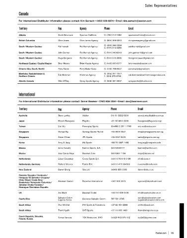 North & South Carolina Larry Langley O / C. (704) 582-3884 lklang@aol.com Northeast Quebec / Capital Region Brian Massie Brian Massie Agency C. (418) 956-6277 brian.massie@easton.com