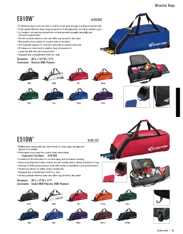bag to stand up on its own • Fully-loaded wheeled player bag designed to fit all equipment, including catcher’s gear