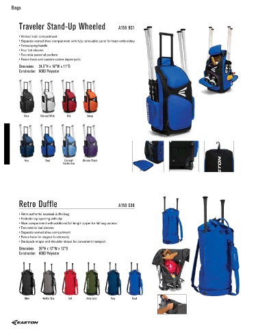 • Vented main compartment • Duffle used by Easton sponsored college teams