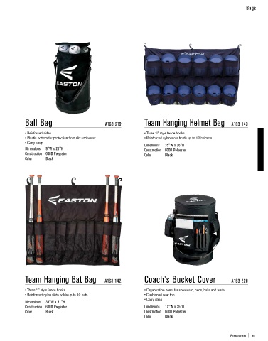 Team Hanging Bat Bag A163 142 Coach’s Bucket Cover A163 220