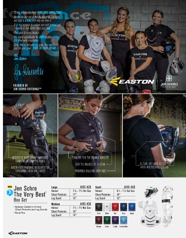 - Easton X Jen Schro does just that. • Dual-density foam padding for comfort and protection