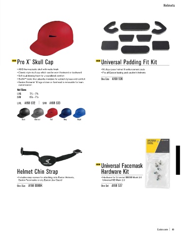 Alpha with Softball Mask • Classic style skull cap which can be worn frontward or backward • Fits all Easton batting and catcher’s helmets