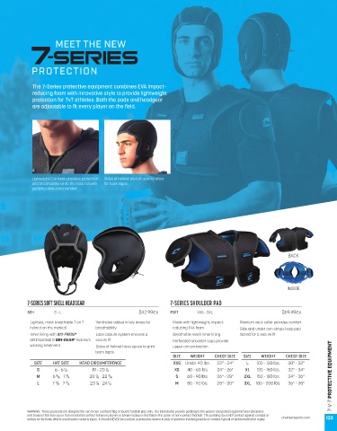 M 6 / 8 - 7 / 4 20 / 8 - 22 / 4 S 60 - 90 lbs. 26" - 28" 2XL 150 - 180 lbs. 34" - 36" 7-V-7 PROTECTIVE EQUIPMENT